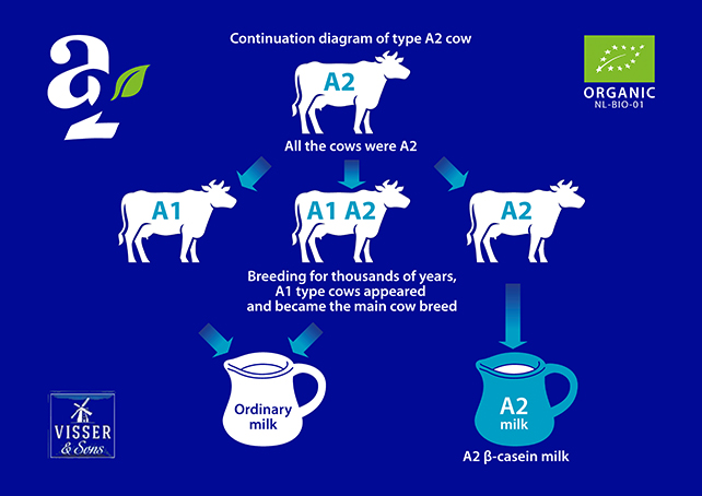 Sữa A2 độc đáo là một loại sữa bò khác biệt so với sữa A1 thông thường, vốn được tiếp thị và phân phối rộng rãi trên toàn thế giới. Mặc dù tất cả các loại sữa đều chứa protein, nhưng điểm khác biệt cơ bản là sữa A2 chứa một loại protein khác gọi là beta-casein A2. Điều này là do sữa A2 không chứa protein β-casein A1, vốn có trong sữa thông thường (thường có sẵn). Sự khác biệt này là do các đột biến gen đã xảy ra trong hàng trăm năm qua. Điều quan trọng cần nhớ là sữa A2 giống với sữa nguyên bản và chính thống được sản xuất bởi bò trong môi trường tự nhiên từ thời xa xưa!